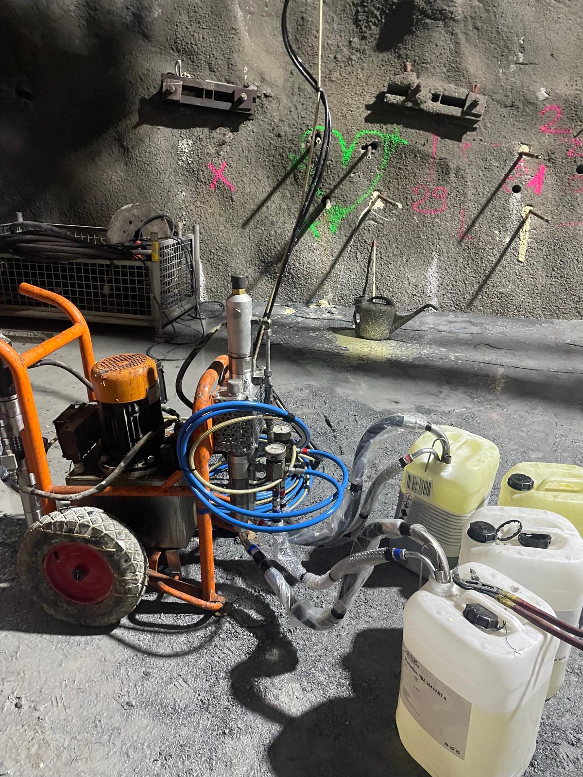 Durante la lavorazione di una galleria, il cliente ha riscontrato un punto con venute d’acqua particolarmente abbondanti, tali da richiedere un sistema di iniezione ad alta resa.